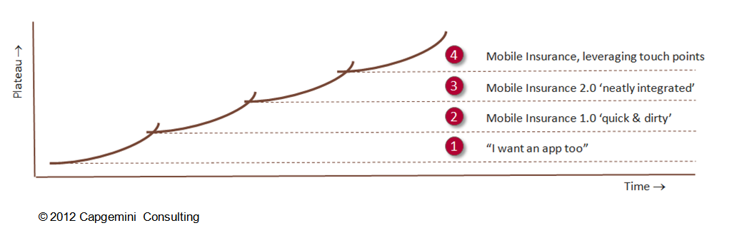Onderstaand plateau-overzicht van de mobiele evolutie bij verzekeraars is gebaseerd op het plateau-overzicht dat ik eerder voor banken maakte.