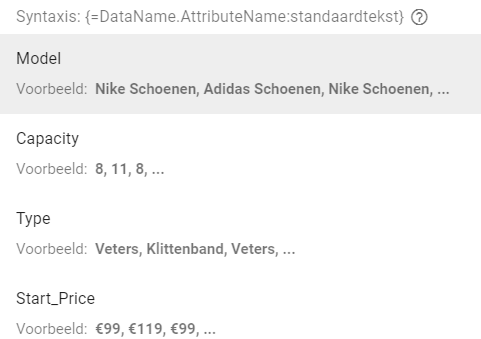 Je kiest de ‘Advertentie aanpassersgegevens’ optie. Vervolgens kun je de gewenste advertenties maken door een haakje (accolade, {) te typen in een invulveld. Kies vervolgens voor een dynamisch advertentie-element en selecteer je feed: