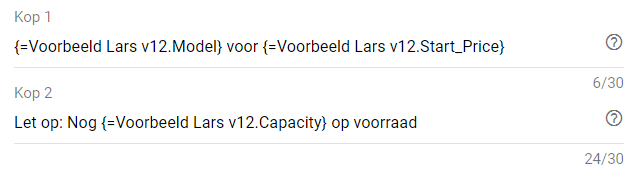 Interessant om te werken met de prijzen en voorraden in de tekst advertenties.