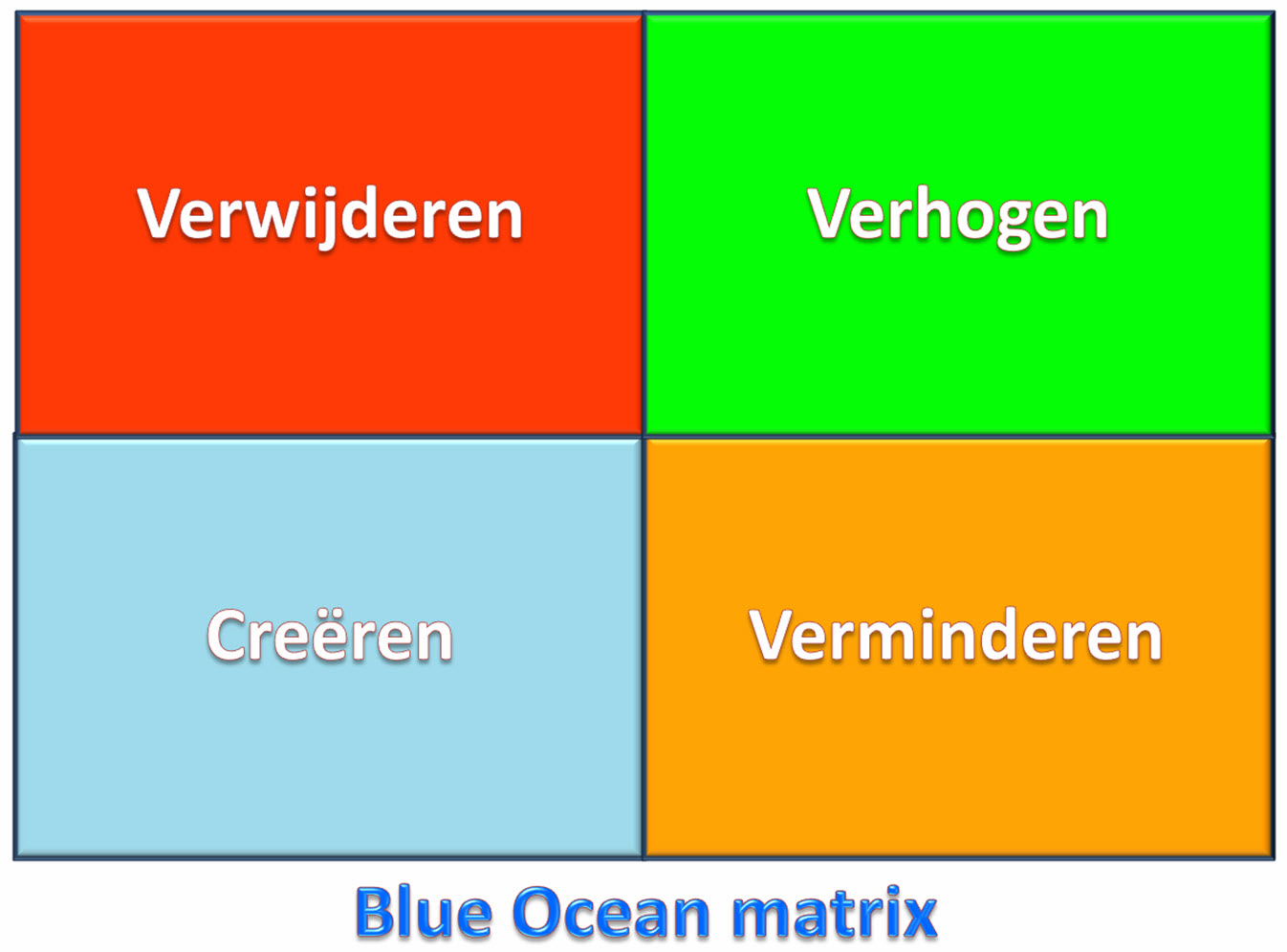 Bij het maken van uw keuzes kan de Blue Ocean-aanpak ingezet worden. Kijk vanuit uw droom naar uw propositie. Neem daar ook de gehele klantbeleving in mee en wanneer uw welke beleving of gebruikersgemak wilt realiseren. Stel uzelf bij het maken van uw keuzes de volgende vragen: