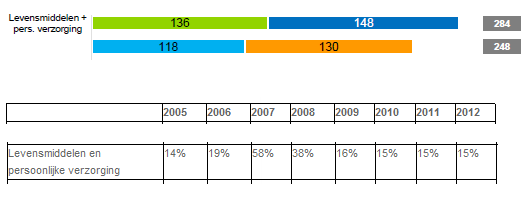 De totale levensmiddelenmarkt (en dan voornamelijk de supermarktenomzet) is de afgelopen jaar gegroeid met 2,7% naar 33 miljard euro. Volgens de Thuiswinkel monitor (2012) is de omzet in de online levensmiddelen & persoonlijke verzorging markt gestegen naar 284 miljoen euro. Dit betekent dat de online levensmiddelen markt 0,8% van de totale levensmiddelenmarkt is. Deze markt is afgelopen jaren telkens met 15% gegroeid. De groei wordt volgens mij gerealiseerd door persoonlijke verzorging, zoals drogisterij artikelen, en “niche” webwinkels, zoals Nespresso. Zowel de Rabobank als Capgemini (2012) verwachten dat de markt in 2017 goed is voor 1 miljard euro.