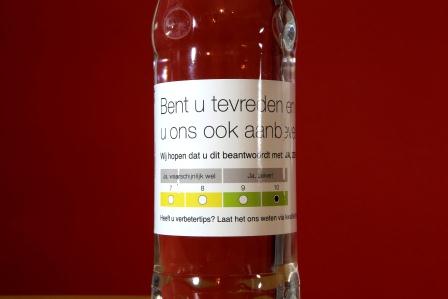 Slechts 23 procent van de consumenten heeft ooit een product of service online beoordeeld. Toch geven consumenten graag hun mening, maar moeten zij proactief benaderd worden dit te doen. De eenvoudigste manier is een consument na aankoop een e-mail te sturen met de vraag je product te beoordelen en een review te schrijven. Durf creatief te zijn in de manier waarop je consumenten benadert. Zo ontving ik onlangs onderstaand waterflesje na mijn bezoek aan de lokale autogarage met de vraag een review te schrijven.
