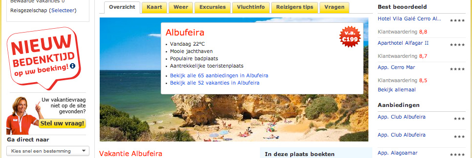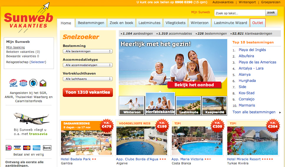 Toon de logo’s direct op je homepage en zet je logo’s kracht bij door een korte uitleg eronder. Wat Sunweb bijvoorbeeld goed doet is dat ze het vliegtuig tonen van Transavia. Dit is een betrouwbare luchtvaartmaatschappij. Uit meerdere onderzoeken blijkt dat bezoekers afhaken als de vlucht wordt uitgevoerd door een onbekende luchtvaartmaatschappij, dus hierop inspelen is een goede zet. De logo’s worden op de homepage boven de vouw getoond zodat het vertrouwen meteen wordt opgebouwd.