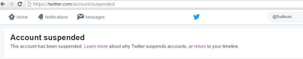 @Sudtours: suspended account op Twitter