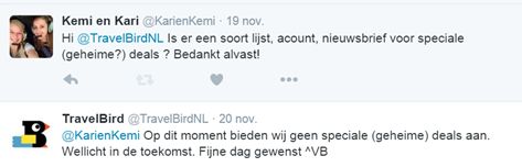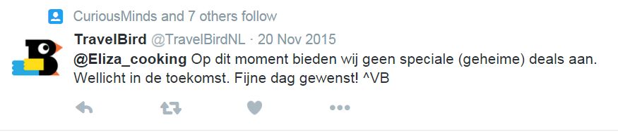 Antwoord TravelBird in Twitteraccounts-onderzoek