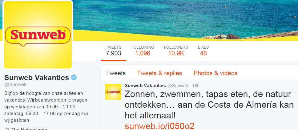 Best wel opmerkelijke bevindingen Jeroen. Vooral dat bedrijven (in dit geval touroperators, hotels of dergelijke; maar waarschijnlijk door te trekken naar andere branches) niet de meest voor de hand liggende naam gebruiken op Twitter. En dan al die inactieve Twitter accounts, dat kan toch niet in deze tijd? Tja, we zullen er maar een voorbeeld aan nemen hoe het NIET te doen…