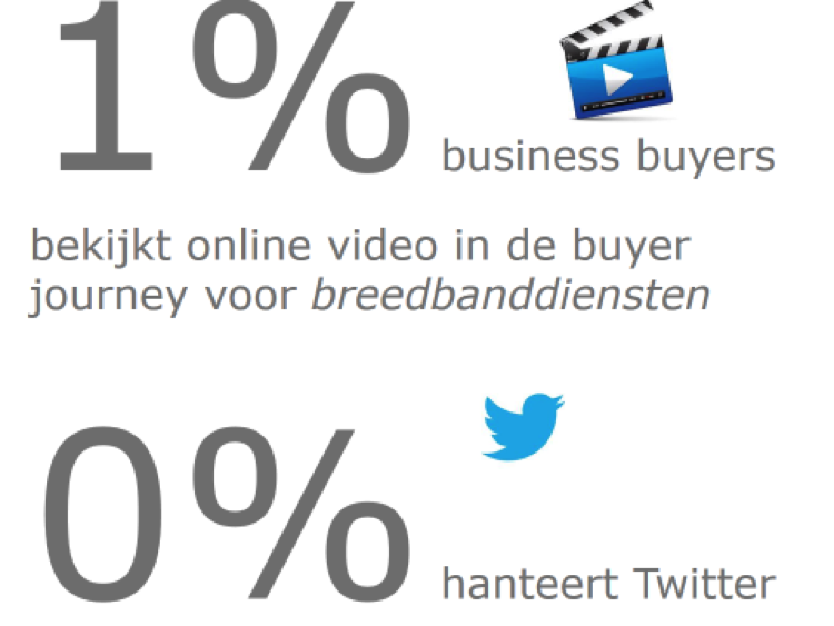 De categorie van Onderhoudscontracten is een willekeurig voorbeeld uit de 18 B2B-categorieën die TNS NIPO in kaart heeft gebracht. Laat me er nog eentje geven: die van de markt van breedbanddiensten. Je zou denken dat de zakelijke buyers van die categorie social media, blogs en video’s omarmen. De praktijk wijst anders uit.