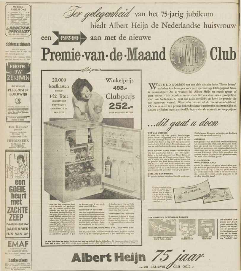 Misschien is het een idee als supermarkten straks de slimme koelkast voor de consument subsidiëren? Dan zou de geschiedenis zich herhalen. In 1962 deed Albert Heijn hetzelfde met de Premie-van-de-Maand-Club. Klanten konden sparen voor producten, met als eerste en beroemdste premie: een goedkope koelkast. Dat was toen een luxe artikel, dat in die tijd nog slechts één op de tien Nederlandse gezinnen bezat.