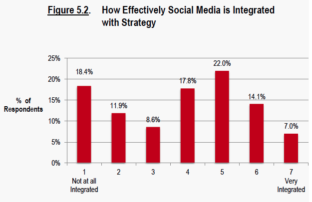 Een studie van CMO.com is in dit verband treffend. Het percentage bedrijven dat social media-marketing effectief heeft geïntegreerd in de marketingstrategie is enorm laag. Je moet daarbij weten dat het hier ondermeer over Amerikaanse Fortune 1000 (!) bedrijven gaat.