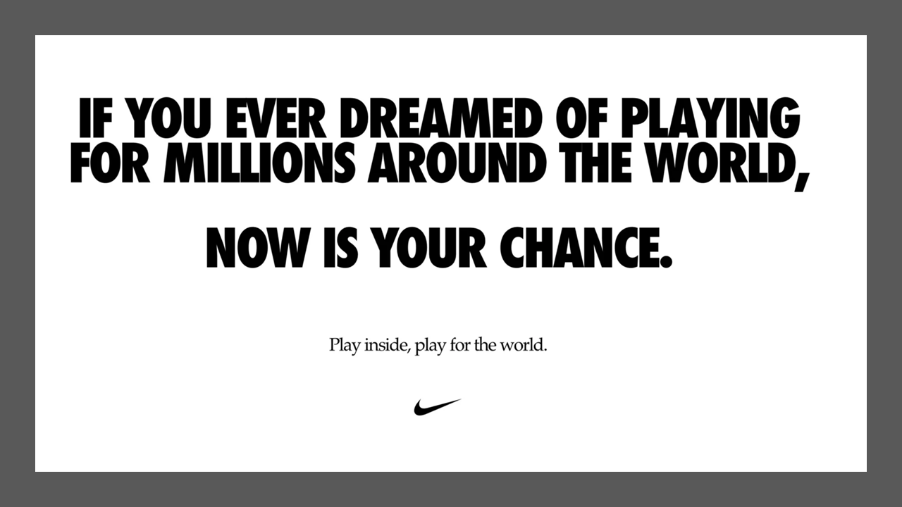 De ‘supportive’ boodschap van Nike daarentegen sloot naadloos aan op de ‘blijf binnen’-oproep van de overheden en past bovendien heel goed in de campagnelijn.