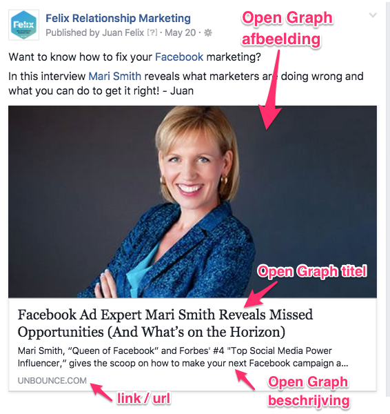Zo rolt Facebook nu een nieuwe Graph API uit die voorkomt dat je de preview informatie (Open Graph metadata) bij een URL (link) kunt wijzigen. Tot op heden kon je de Open Graph-afbeelding, -titel en -beschrijving bij een linkbericht wijzigen, maar met de nieuwe Graph API versie 2.9 is dat voorbij.