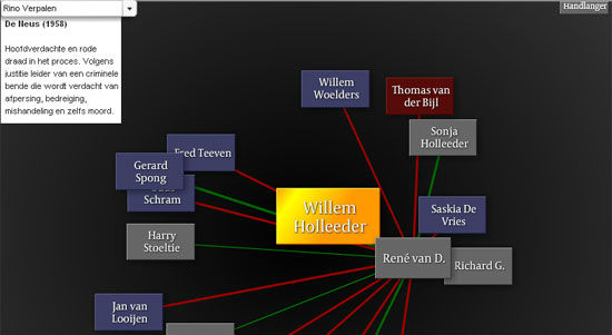 Absolute topper van online informatie over de Holleeder-case is wat mij betreft de Willem Holleeder Connectie Browser van Vrij Nederland. Deze Holleeder-browser telt 57 schetsen van de sleutelfiguren in de rechtszaak tegen Willem Frederik Holleeder.