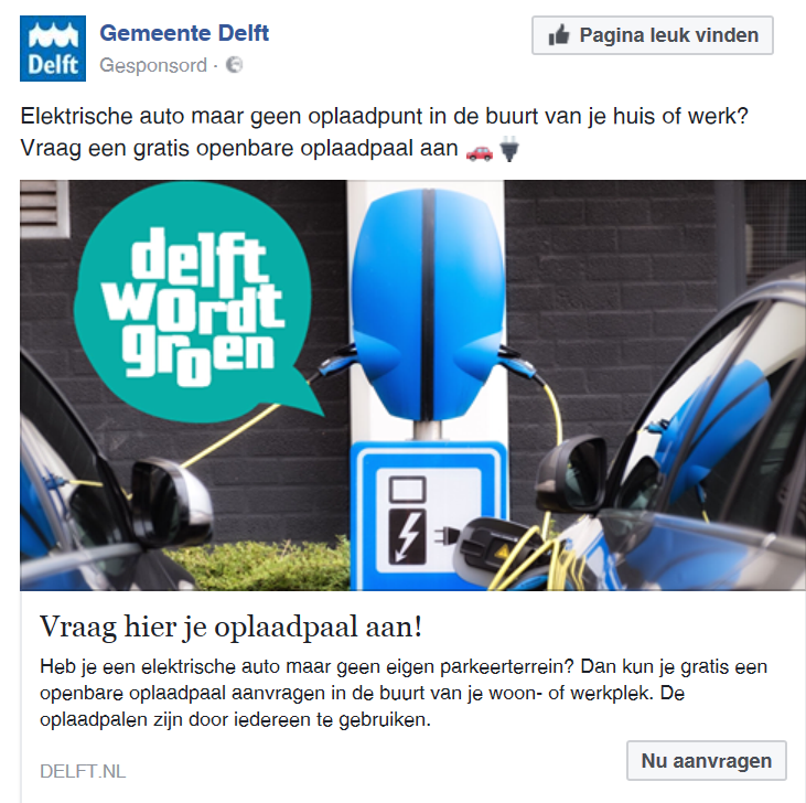 “We hebben expres ook gekozen voor een aparte Facebook-pagina. Om het bereik te vergroten, ‘branden’ we bovendien onderwerpen die meelopen in het gemeentelijke kanaal met Delft wordt Groen.”