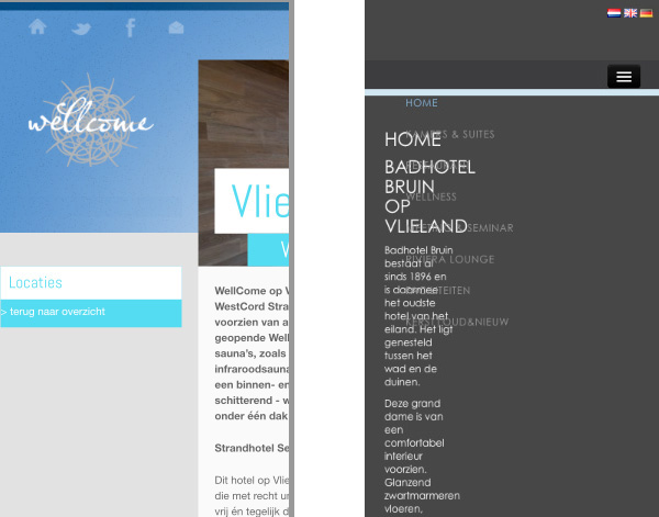 Om twee voorbeelden te delen, hieronder zie je de websites van een wellnesscenter waar we heen wilden en een restaurant waar we gingen eten. Het is beroepsdeformatie misschien, maar ik knap meteen al af op de eerste ervaring. Als ik daarna dan nog moet scrollen, swipen en zoeken voor een menu of openingstijden, ben ik er snel klaar mee.