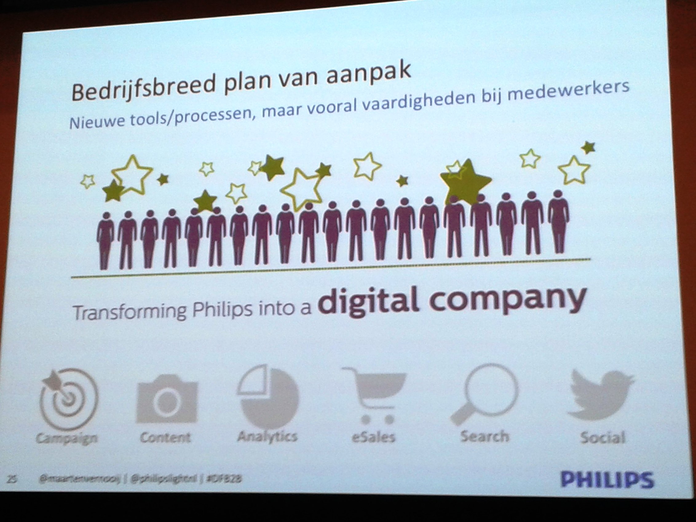 In 2013 was er nog een achterstand, nu zijn 20.000 medewerkers binnen Philips Lighting Benelux getraind op 6 digitale skills en zijn er online & social heroes, die een rolmodel zijn voor hun collega’s. Zo wordt het communicatiepotentieel van de eigen mensen benut.
