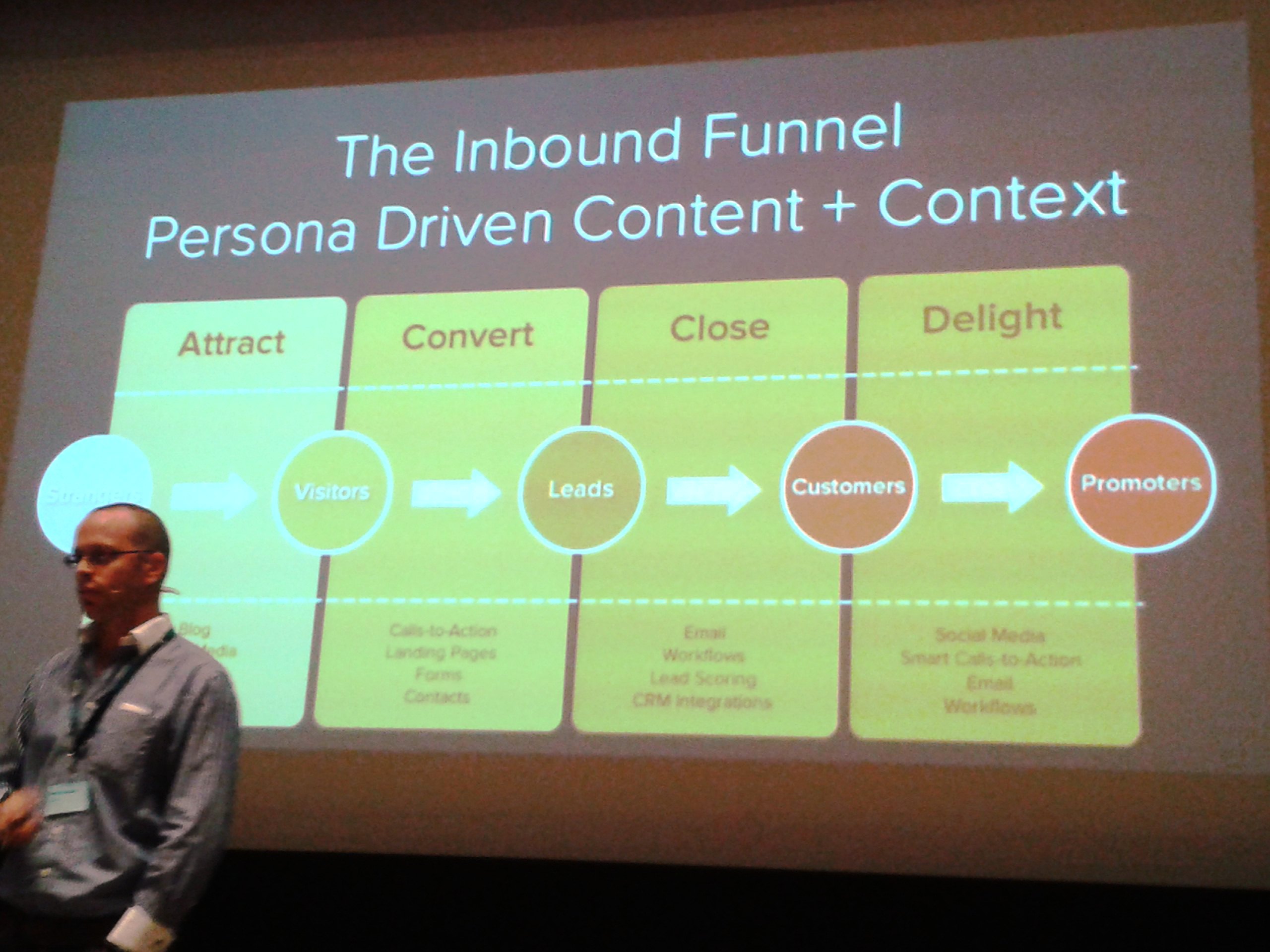 Als derde keynotespreker vroeg Steve Vaughan, channel accountmanager Hubspot, zich af in hoeverre marketing geliefd is: help of bombardeer je je (potentiële) klanten in de verschillende fases van het koopproces? Met inbound marketing gaat het er niet meer over wie het grootste budget heeft, maar welke content het beste aansluit op wat klanten nodig hebben in elke fase van de customer journey. Wil je deze aanpak gaan opschalen, dan is het handig om te gaan automatiseren via marketingsoftware. Op deze manier ben je eigenaar van je proces en niet afhankelijk van social of online platformen. Hoe dichter naar de koop toe, hoe meer gepersonaliseerd en specifiek de content wordt. Eerlijk gezegd bekruipt me hierbij wel een gevoel van ‘big brother is watching you‘: want ‘het systeem’ weet wie ik ben, waar ik in geïnteresseerd ben en waarop ik klik.