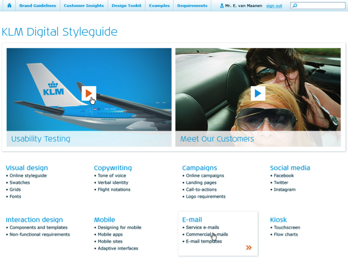 Omdat een pdf nogal statisch en lastig te updaten is, wilde KLM een meer dynamische omgeving met als doel wereldwijde consistentie in de toepassing van de online identiteit. Een wijziging in de stijlgids kan direct worden doorgevoerd en toegepast, waardoor overal en realtime dezelfde informatie beschikbaar is. Bij een pdf die weer opnieuw verstuurd moet worden en vaak jarenlang als print op een bureau ligt, is dit nauwelijks mogelijk. Bijzonder aan deze stijlgids is dat het geen registrerend of documenterend karakter heeft, maar meer sturend en normerend. Niet alleen door het aanbieden van actuele informatie, maar ook omdat de informatie op maat wordt aangeboden. Stijlgidsen zijn vaak enorme boekwerken die hun doel hierdoor voorbijschieten. In plaats daarvan worden op de startpagina van de KLM-stijlgids op maat gemaakte setjes aangeboden die informatie bieden aan specifieke rollen als front-end developer, fotograaf of copywriter. Je krijgt een relevante doorsnede van de stijlgids die voor jouw rol van toepassing is. Hiermee wordt de stijlgids een nuttige tool die daadwerkelijk gebruikt wordt.