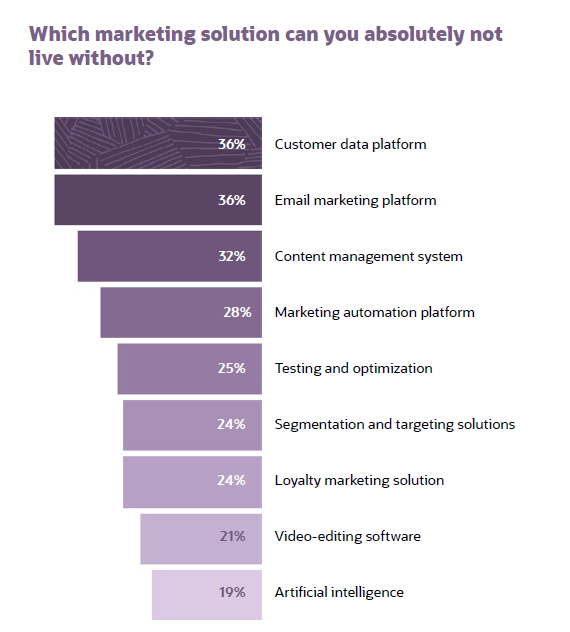 Terwijl het landschap van marketingtechnologie zich blijft uitbreiden, staan sommige relatieve nieuwkomers nu naast “beproefde zwaargewichten” als meest noodzakelijke technologie in de ogen van de ondervraagde marketeers.