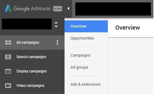 - Een belangrijke verandering in het design is dat de navigatietabs voor ‘Campagnes’, ‘Advertentiegroepen’ en ‘Instellingen’ (die we in de vorige interface aan de bovenkant van de pagina vonden) nu in het linkermenu staan weergegeven. Tevens zijn nu ook ‘Advertenties’ en ‘Advertentie-extensies’ samengevoegd tot één tab.