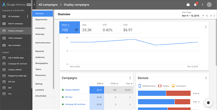 Los van de nieuwe lay-out en het design waar we straks nog uitgebreid op terugkomen, is het duidelijk dat de focus van het nieuwe AdWords volledig ligt op het makkelijk en snel inzichtelijk maken van jouw resultaten. Het algemene overzicht is namelijk volledig gericht op het efficiënt en snel lezen van data die voor jou als marketeer het meest relevant zijn. Daarnaast is de snelheid van AdWords met 20 procent verbeterd en bespaar jij met deze geheel nieuwe setting dus ook tijd.