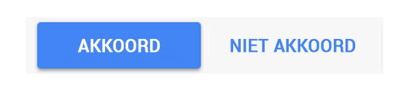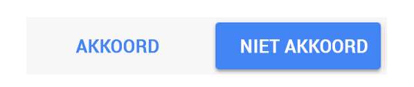Het is onmogelijk om ‘Niet Akkoord’ op een positieve manier te verwoorden. We zouden daarom niet de knoppen, maar de vraagstelling moeten aanpassen: “Zullen wij onze privacy-regels hetzelfde laten?” ‘Akkoord’ wordt in dat geval de (voor Google) negatieve optie.