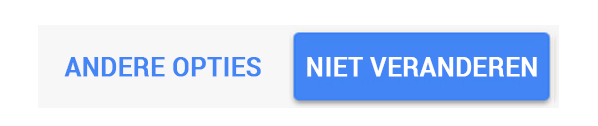 De weergave van Googles knoppen waarbij we ‘Ik ga akkoord’ veranderen in het voor de consument meer risicovolle ‘Veranderen’. ‘Niet veranderen’ is daarmee nu de veilige optie geworden.