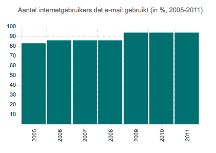 E-mail is de grote survivor in het geheel. Draait al bijna 20 jaar mee en blijft zijn waarde behouden. 94% van de Nederlanders gebruikt e-mail. Dit maakt mailinglijsten zeer waardevol. Zeker op de lange termijn. Want mensen blijven het gebruiken.