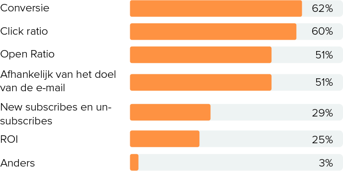 Conversie (62 procent) is, net als vorig jaar, de belangrijkste pijler om het succes van e-mailmarketing te meten. Een stijging van 12 procent ten opzichte van 2016.