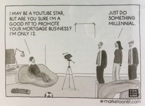 Ik heb me tranen gelachen om de bijdrage van Ryan Wallman (volg die man: @Dr_Draper) die de onzin in marketing met onzin probeert te bestrijden, zoals de tien dingen die marketeers ons geleerd hebben over millennials: