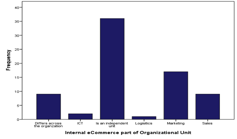 Het daadwerkelijk aantal FTE’s in het eCommerce team verschilt echter sterk per bedrijf. Traditionele retailers kiezen er vaak voor veel eCommerce gerelateerd taken binnen de bestaande organisatie neer te leggen en plaatsen maar enkele medewerkers in het eCommerce team zelf. Bij online retailers bestaat de eCommerce unit echter de facto uit het gehele organisatie. Het eCommerce team is meestal een onafhankelijk unit die direct rapporteert aan de directie. In andere bedrijven is het eCommerce team bijna altijd een onderdeel van de marketing of sales afdeling. Er zijn slechts enkele gevallen waarbij het eCommerce team nog rapporteert aan de ICT afdeling.