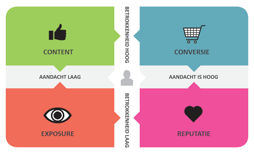 Dit model laat zien dat verschillende mediastrategieën (met elk een eigen doelstelling) nodig zijn om alle mogelijke typen consumenten te bereiken. Er is daarbij niet één strategie waarmee alle consumenten even effectief bereikt kunnen worden: zo is de inzet van massamedia alleen relevant als er uiteindelijk ook in de winkel geoogst wordt. En zo zullen adverteerders die alleen aan audience targeting doen, moeten onderkennen dat zij nog een hoop marktpotentie laten liggen zolang zij niets aan forced expsore of hun reputatie doen.