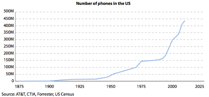 Even een opmerking, ik denk dat je grafiekje niet klopt. Hadden ze in 1900 al mobiele telefoons in de US?