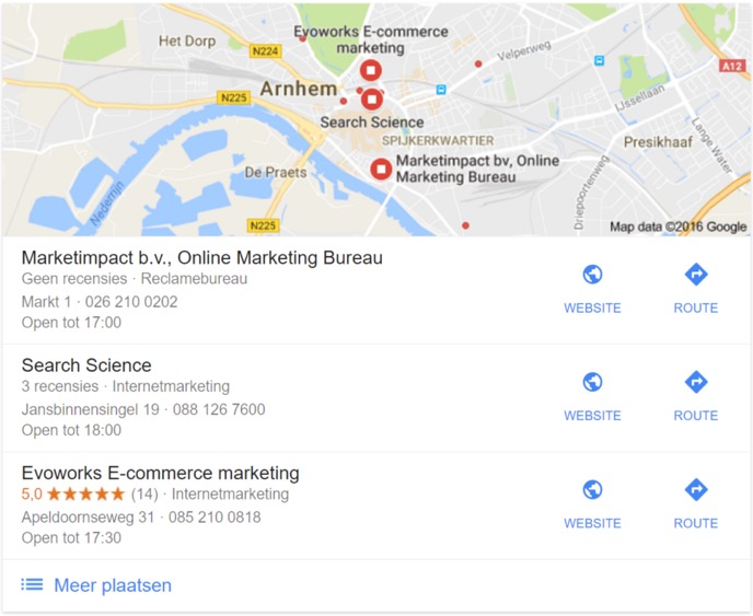 Het is erg belangrijk om de contactgegevens van je bedrijf consistent te vermelden op het internet. Dit is van grote invloed op je positie in de local stack van Google. Pas je jouw bedrijfsnaam aan, maar voer je die wijziging niet door in bijvoorbeeld online bedrijvengidsen, dan zijn je bedrijfsgegevens niet consistent vermeld op het internet. Daardoor heb je een kleinere kans om goed te scoren in de local pack.