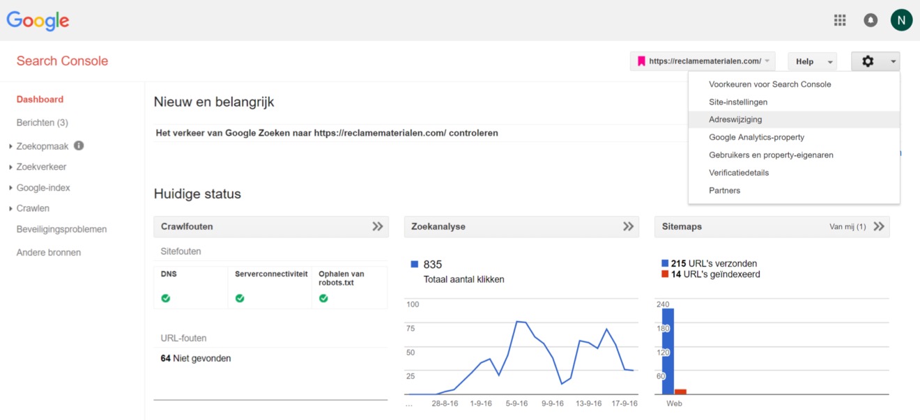 Wanneer je verandert van domein, moet je dit doorgeven in Google Search Console. Hierdoor verlaag je de impact op je posities in de zoekresultaten. Om dit te doen, moet je toegang hebben tot de oude en de nieuwe property. Vergeet ook niet om je voorkeursdomein aan te geven.