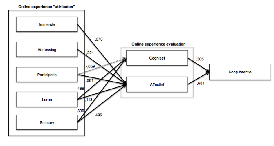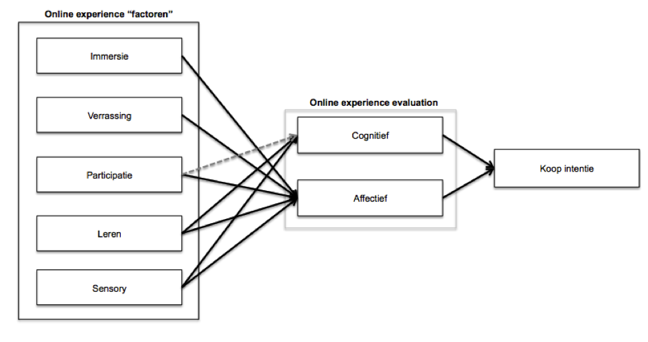De eindconclusie van dit onderzoek is dat online een affectieve en cognitieve evaluatie bijdragen aan de koopintentie. De factoren immersie, verrassing, participatie, leren en sensory dragen bij aan een positieve affectieve evaluatie. De factoren leren en sensory dragen positief bij aan een cognitieve evaluatie.