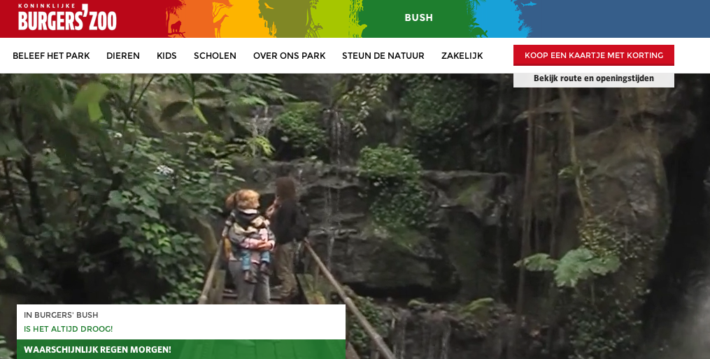 Bezoekers kopen gemiddeld anderhalve dag voor hun bezoek aan een dierenpark een kaartje. Een belangrijke beslissingsfactor hierbij is het weer van de volgende dag. Doordat we op onze homepage de content hebben gekoppeld aan buienradar, biedt de homepage een verrassingselement. De content op de homepage is afhankelijk van het weer van morgen.