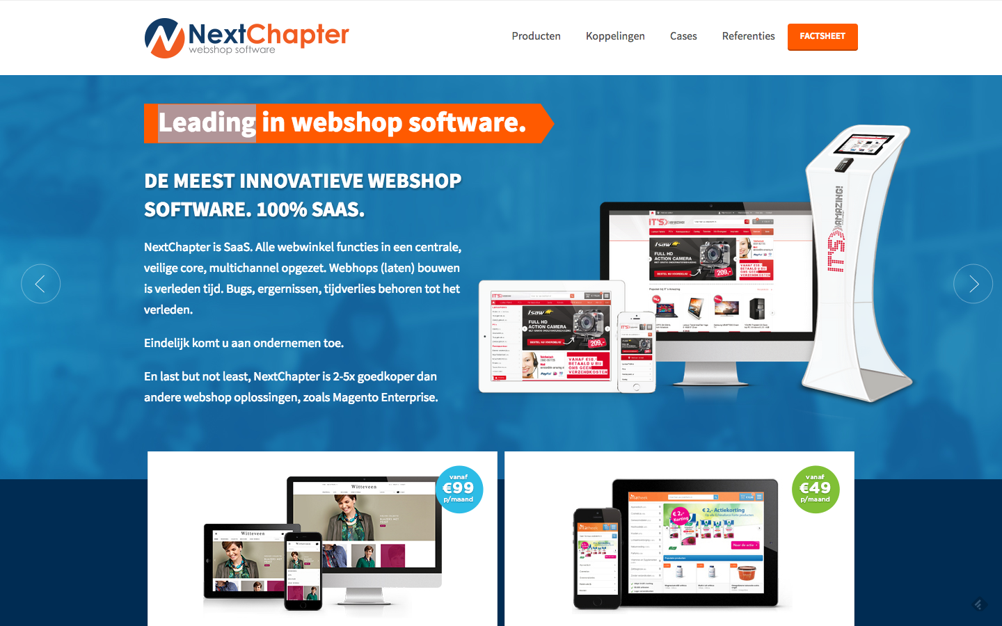 Wat een NextChapter-winkel uiteindelijk kost, is op basis van de site-info niet te zeggen, maar je beschikt waarschijnlijk wel over een winkel die barst van de mogelijkheden en waar je ook in groeiscenario’s voorlopig mee vooruit lijkt te kunnen. NextChapter zou je kunnen zien als de SaaS-tegenhanger van Magento.