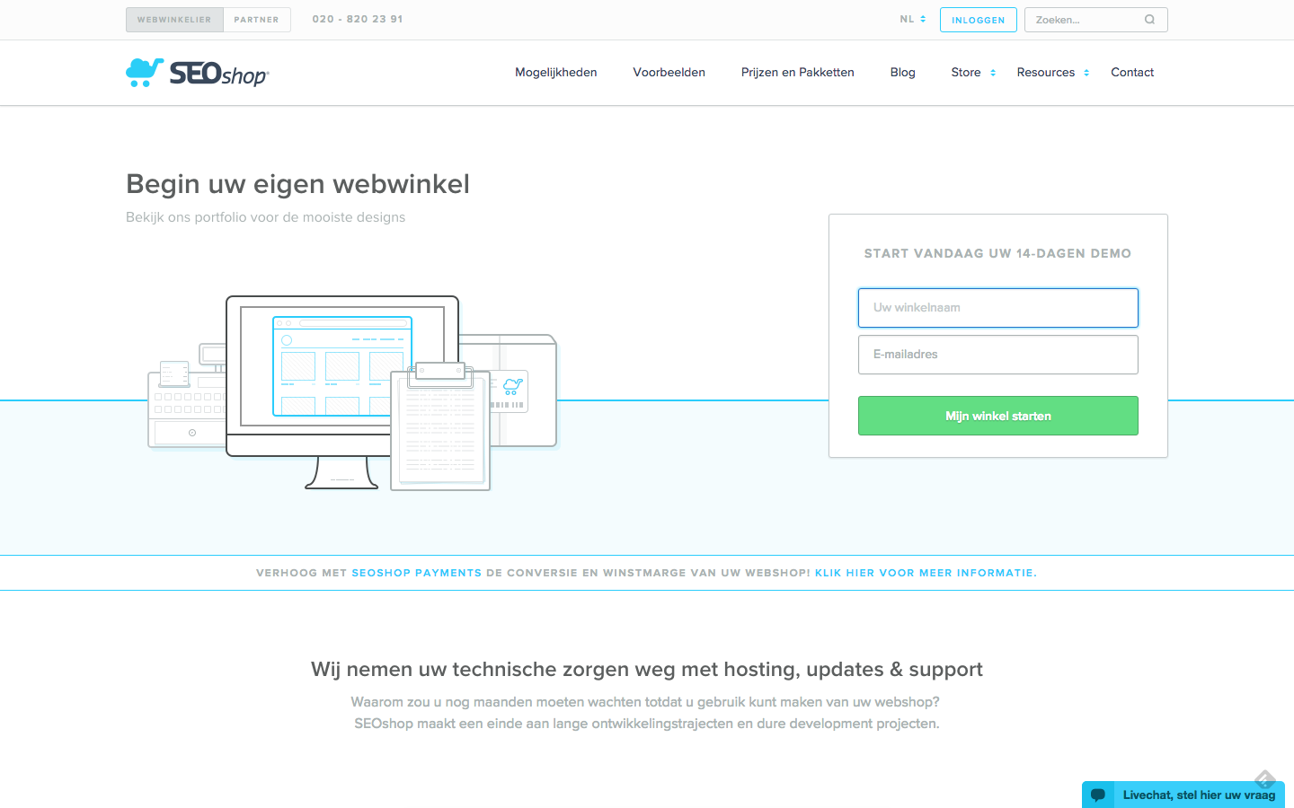 Je kunt drie maanden lang alles uitproberen in een eigen shop zonder bestel- en betaalmogelijkheid. Zo kunt je op je gemak gratis je winkel inrichten en pas gaan betalen als je live gaat.