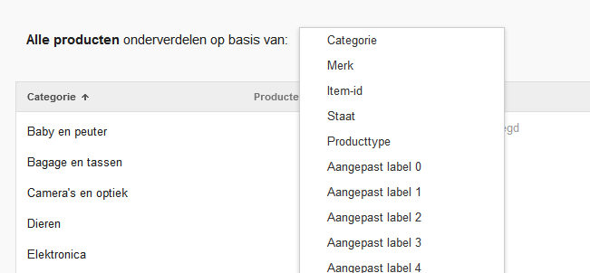 In plaats van zoekwoorden of productdoelen stel je bij de nieuwe shoppingcampagne productgroepen in. De producten die in de feed staan, kun je onderverdelen op productkenmerken als: categorie, producttype, merk, id of de aangepaste labels. Voor elk productgroep is het mogelijk om aparte CPC-biedingen in te stellen, zo heb je een goede controle. Per productgroep zijn statistieken als CTR, gem CPC, kosten en conversies inzichtelijk en heb je dus een goed overzicht van de prestaties en kan je de biedingen daar op aanpassen.