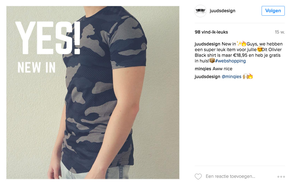 Voorbeeld van het gebruik van de hashtag #webshopping