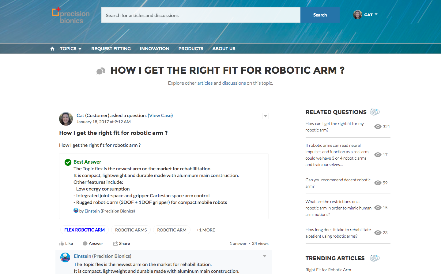 Deze SuitSupply service (nu eens niet Einstein maar ‘Tiestein’ dus) is grotendeels door kunstmatige intelligentie mogelijk gemaakt, aldus Guillaume Roques. Webcare gefaciliteerd door kunstmatige intelligentie is een ander voorbeeld: zie onderstaande illustratie van een door Einstein gegenereerd antwoord op een klantvraag.