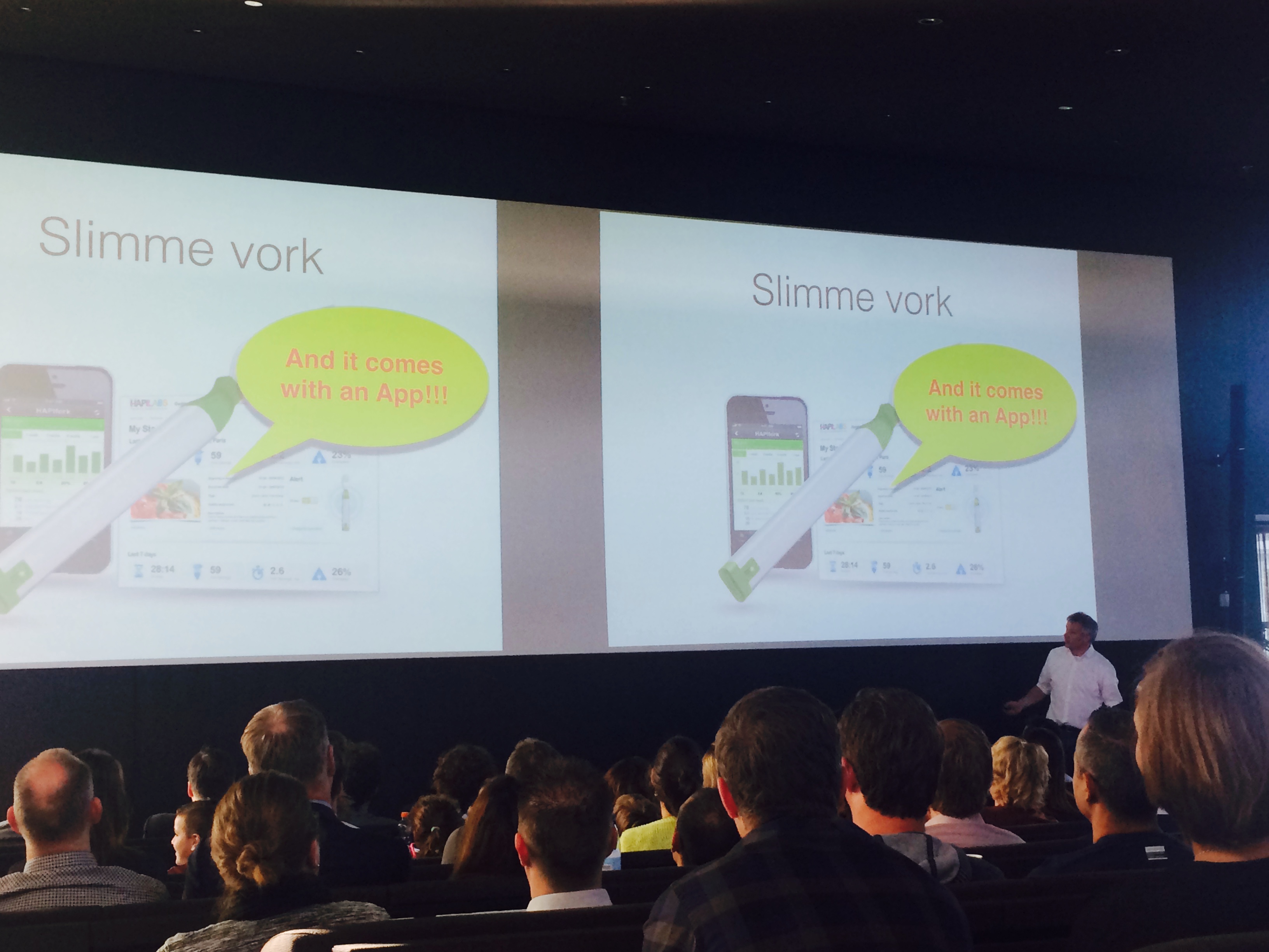 Noorsbergen’s boodschap was voor de meeste aanwezigen na vijf tot zes voorbeelden al zo klaar als zonnestroom. De Quby CEO vond nog meer voorbeelden echter te leuk om niet te delen en somde er liefst 31(!) op. Om ze vervolgens compleet met tellertje nog eens de revue te laten passeren. Gelukkig, zo grapte Noorsbergen, is de iPhone 10 al in de maak, een extra lange variant vergelijkbaar met je afstandsbediening thuis, met lekker veel ruimte voor nog veel meer apps.