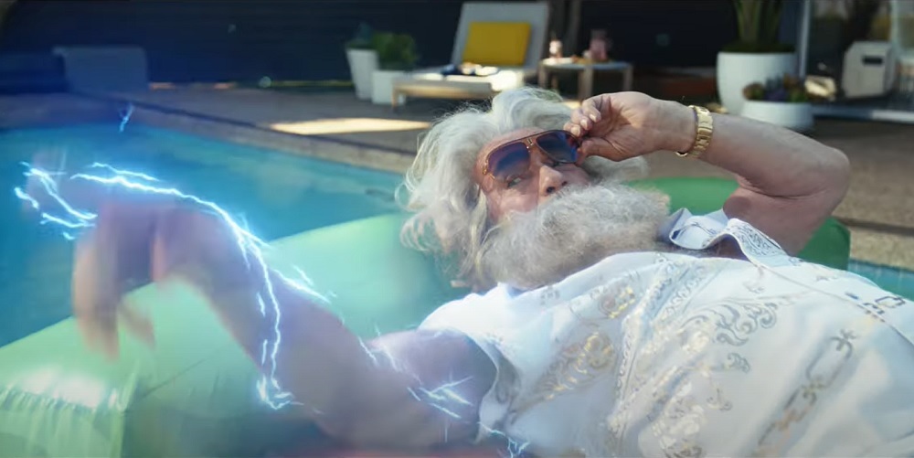 Na een druk leven op de berg Olympus valt het ingekakte pensionadobestaan in Palm Springs Zeus wat tegen, zeker omdat hij zijn ‘skills’ als weergod en afzender van donder en bliksem nog niet helemaal kwijt is. Arnold Schwarzenegger, die Zeus speelt, ervaart wat aanpassingsproblemen in bemiddeld Californië tijdens de 60-seconden-film, gemaakt door Goodby Silverstein & Partners onder regie van Bryan Buckley. Zeus raakt verveeld en gefrustreerd door alledaagse elektrische klusjes als het aanslingeren van een elektrische heggenschaar en een golfkar. Dat komt allemaal goed als zijn vrouw Hera, gespeeld door Salma Hayek Pinault, hem een elektrische BMW iX geeft. Het oplevende setje scheurt vervolgens rond in de elektrische SUV terwijl ze meezingen met “Electric Avenue”, terwijl Zeus zijn krachten inzet om alle verkeerslichten op groen te zetten.