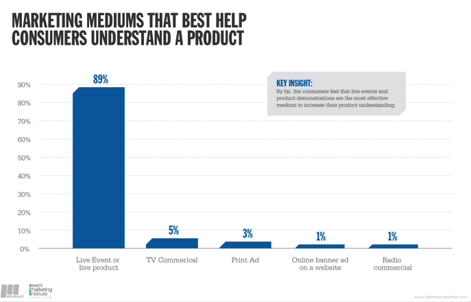 Uit consumentenonderzoek bleek dat 93 procent van de ondervraagden aangaf een product of dienst beter te begrijpen na een event ten opzichte van dezelfde boodschap via televisie. Het verschil tussen events en de overige media is sowieso enorm: