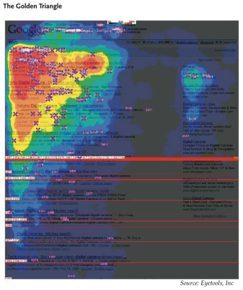De ‘golden triangle’ in de Google-zoekresultaten, op basis van eyetracking-onderzoek