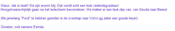 Dat geldt dus ook voor de social media-strategie die de verkoopmaatschappij sinds dit jaar uitrolt is op dit principe geënt. Volvo-rijders en Volvo-fans praten graag over het merk, weten ze bij Volvo uit ervaring. De klanten praten over Volvo en het auto merk is te gast in hun gesprekken. Door die gesprekken hoort Volvo Nederland vaak dat mensen trots of blij zijn om in een Volvo te rijden en de salescompany leert door deze discussies ook waarom.