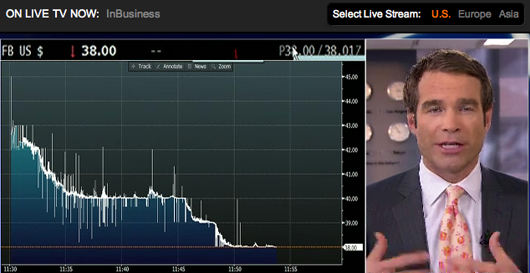 De verwachting dat de koers direct zou exploderen kwam niet uit. Het was even schrikken toen binnen een uur het aandeel daalde tot net onder de introductieprijs van 38 dollar. Daarna trok het aandeel weer aan.