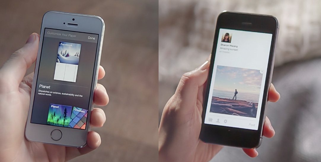 De app Paper opent met de newsfeed – iets waar Facebook flink mee aan het experimenteren is. Een gebruiker kan de app aanpassen met andere rubrieken over diverse thema’s en onderwerpen, van fotografie en sport tot voedsel, wetenschap en design. Elke sectie bevat een mix van nieuwe content en bestaande publicaties waarvan je fan bent.