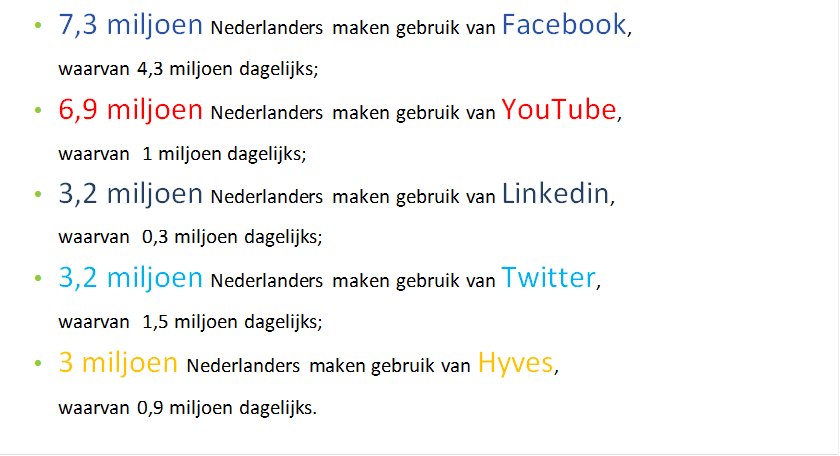 Een kwart van de Nederlanders maakt gebruik van LinkedIn. De gebruikersintensiteit van het zakelijke netwerk is wel erg laag, slechts 9% maakt er dagelijks gebruik van. Dat wijst er op dat veel mensen het vooral gebruiken voor eigen profilering, en zich weinig mengen in bijvoorbeeld LinkedIn Groups, maar dat zal het LinkedIn onderzoek van Richard van der Blom snel uitwijzen.