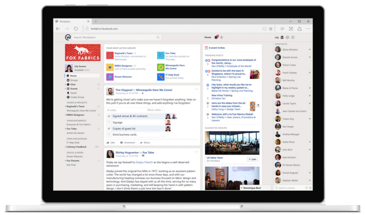 Ruim twee jaar geleden introduceerde Facebook de bèta-versie van Facebook At Work. Sinds gisteren is het dan eindelijk echt live, alleen dan onder de naam Facebook Workplace. Inmiddels heeft het nieuwe b2b-platform al meer dan 1.000 klanten, waaronder booking.com, Oxfam en Starbucks.